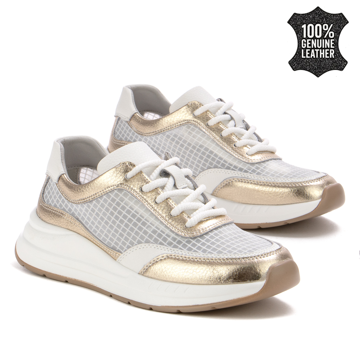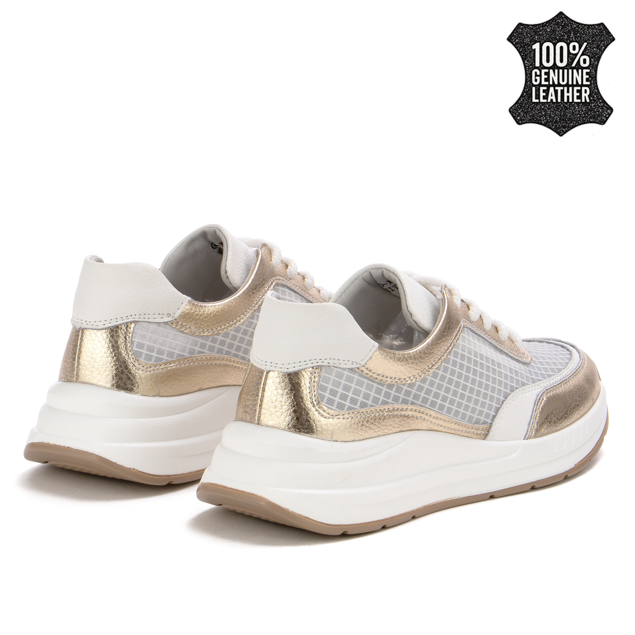 Перфектното съчетание между елегантност и активен начин на живот ви очаква с тези дамски маратонки от естествена кожа. Създадени да бъдат не само стилни, но и изключително удобни, те са идеалният избор за всяка ситуация – от спортна зала до разходка из града. Впечатляващият бял цвят с златисти акценти придава модерен вид, а качествената естествена кожа осигурява издръжливост и комфорт през целия ден. Не изпускайте възможността да добавите тези обувки в гардероба си и да се наслаждавате на неустоимото им излъчване!Tatiana Ruseva