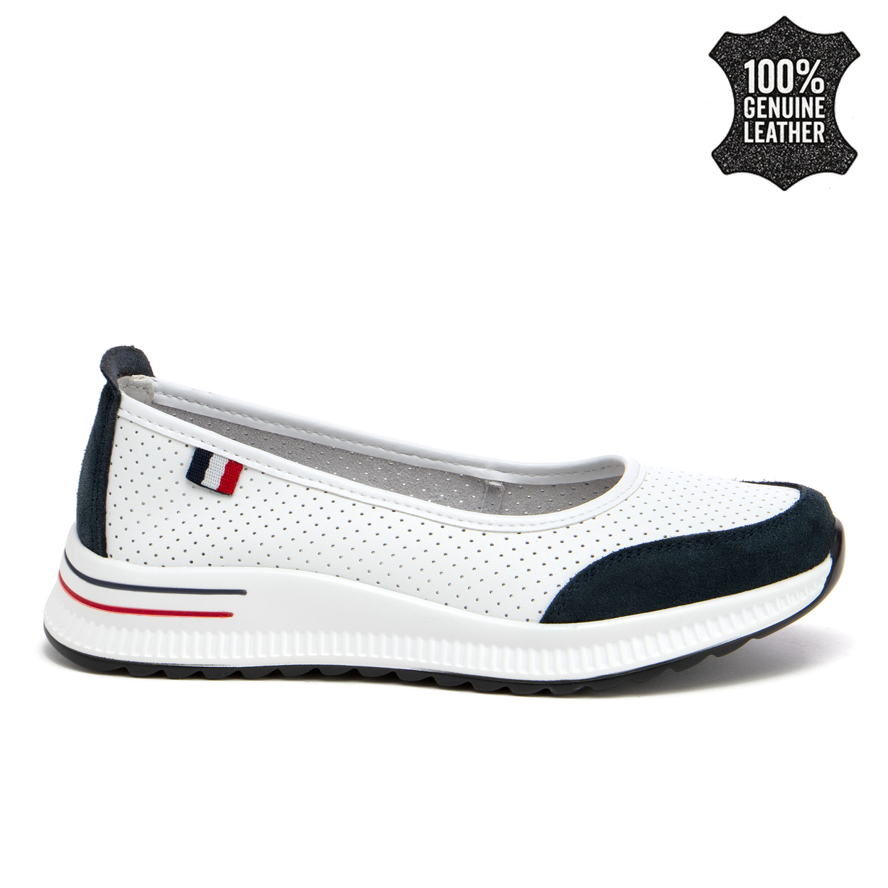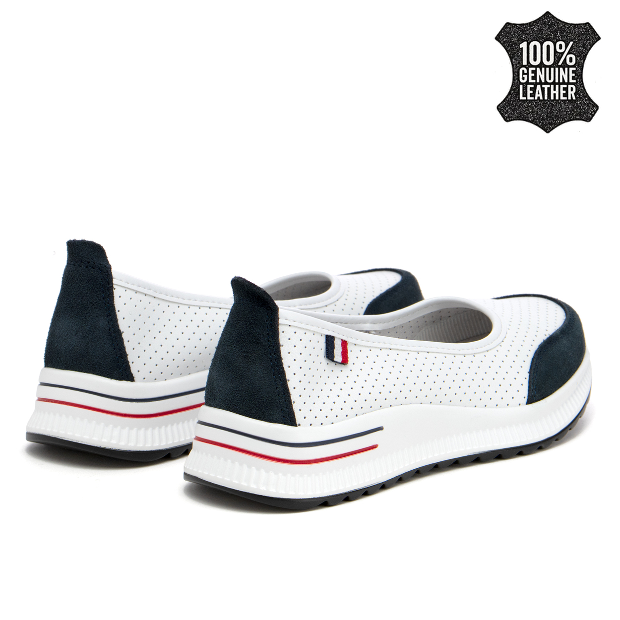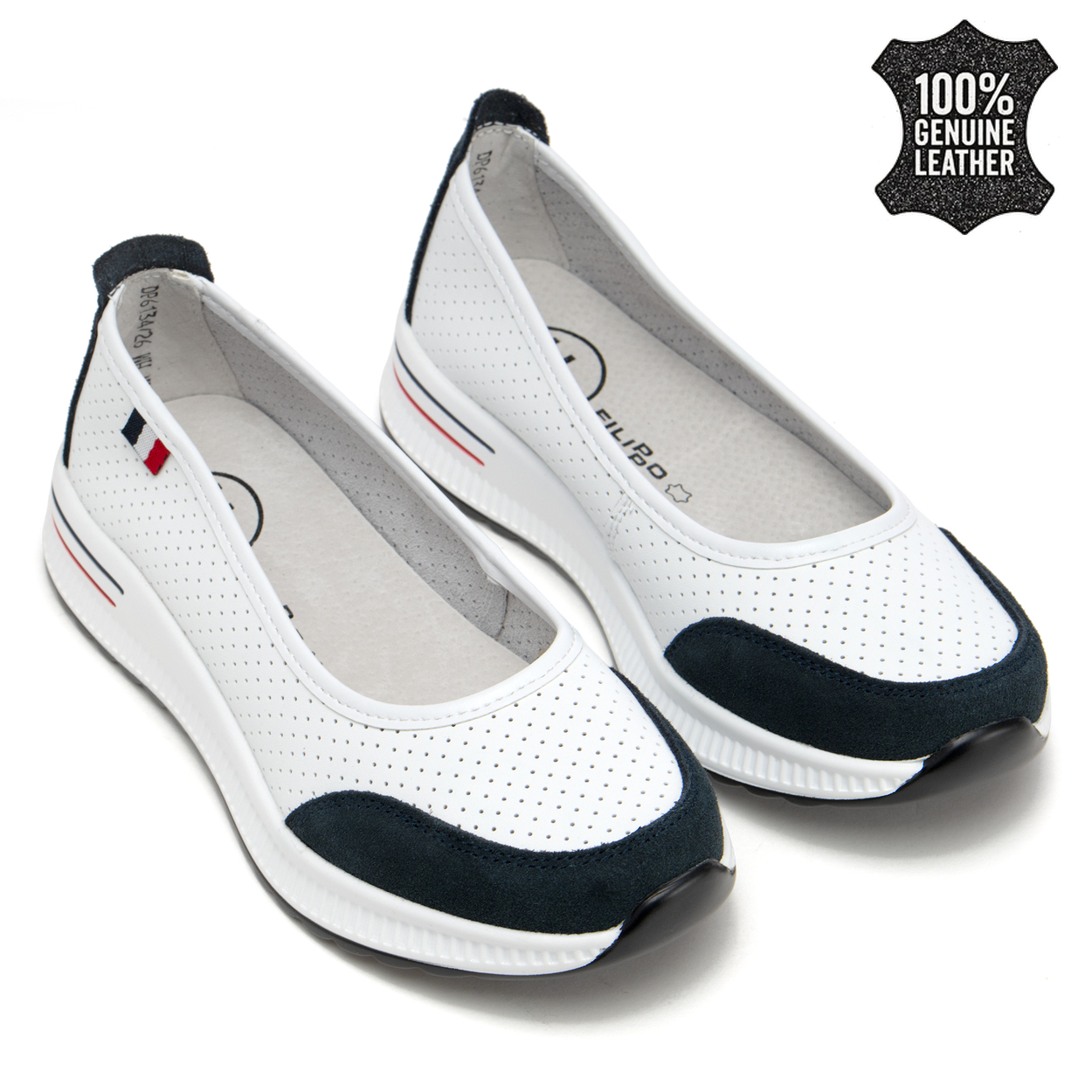 Бели дамски обувки от естествена кожа slip-on – създадени за приятно носене през целия ден, с усещане за удобство и лекота DP6134 white/NV